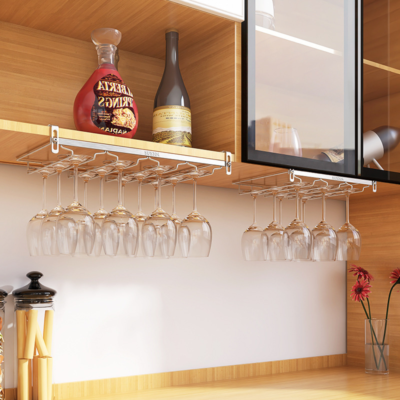 Rak gelas anggur gantung, gantungan sapu tangan rumah tangga dapur bebas lubang cangkir terbalik penyimpanan