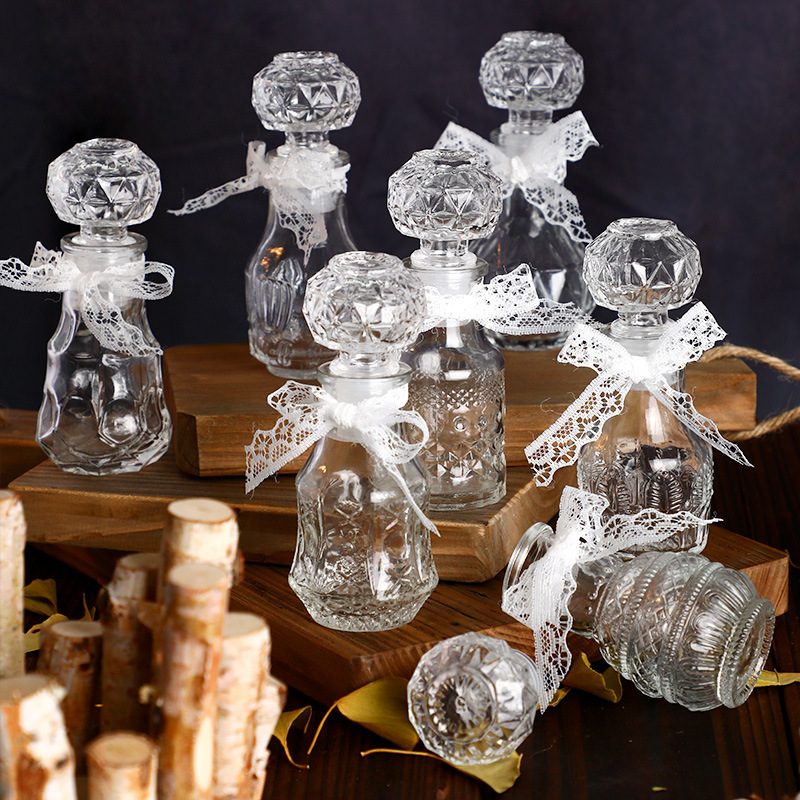 French retro vas kecil kabinet anggur Eropa transparan dekorasi saku relief botol kaca dekorasi foto alat peraga grosir
