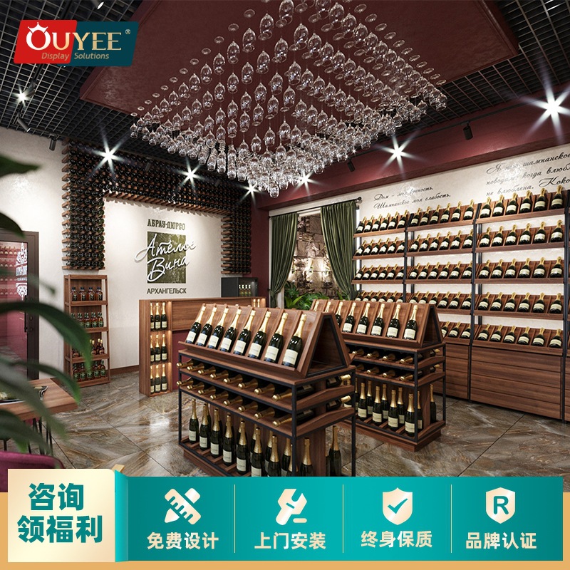 Asap hotel suhu konstan lemari anggur seluruh toko desain minuman keras Maotai rak Tampilan anggur penyimpanan rak kayu solid rak anggur