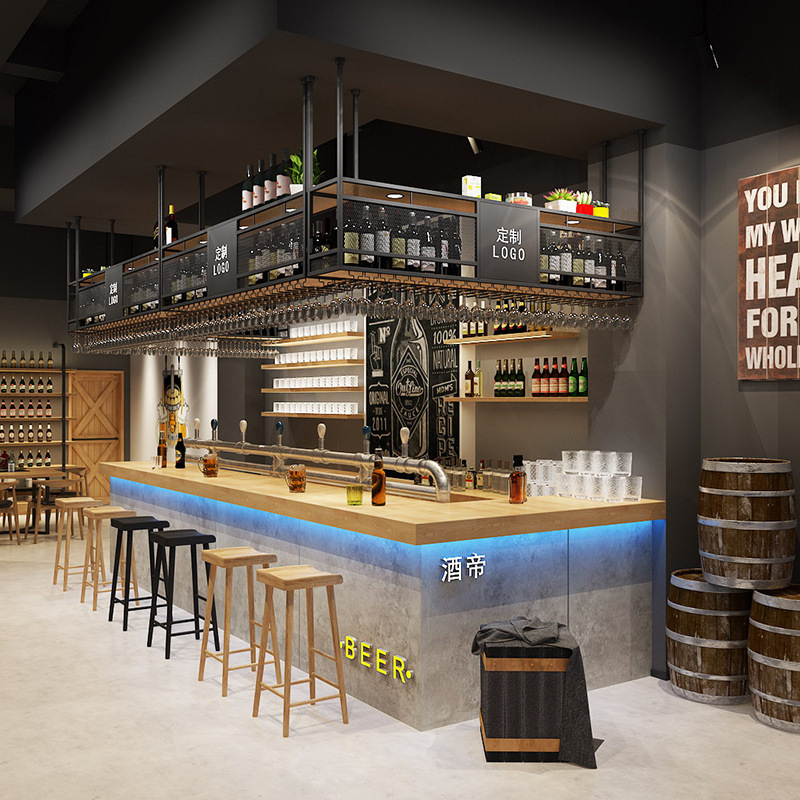 Rak display dinding mewah ringan kreatif anggur terlaris rak Bar bening Bar gaya industri rak anggur terpasang di dinding kabinet anggur