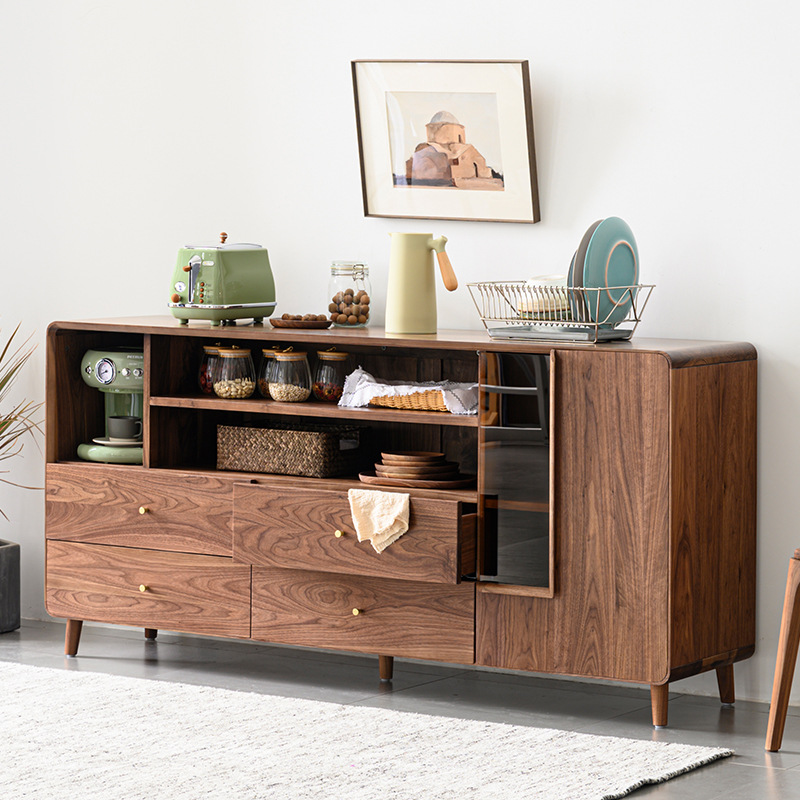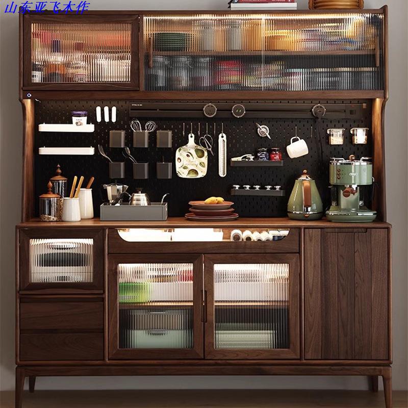 Kabinet papan samping kayu padat Nordic kabinet penyimpanan restoran kenari hitam kabinet anggur log mewah ringan penyimpanan modern sederhana