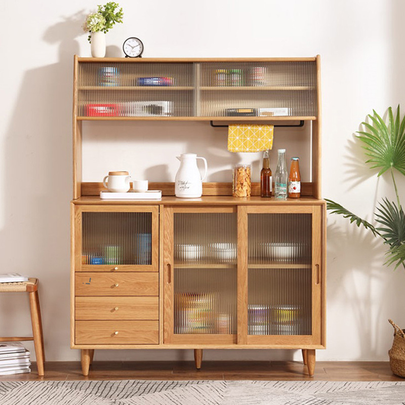 Lemari Samping Kayu Solid Lemari Ruang Tamu Modern Eropa Utara Lemari Teh Lemari Penyimpanan Penyimpanan Dapur Multifungsi