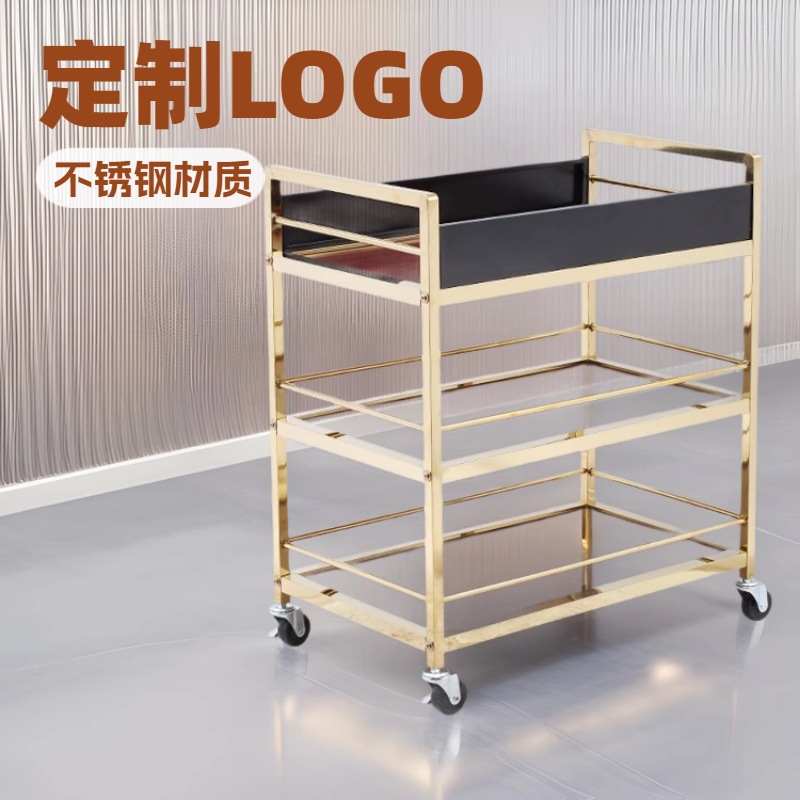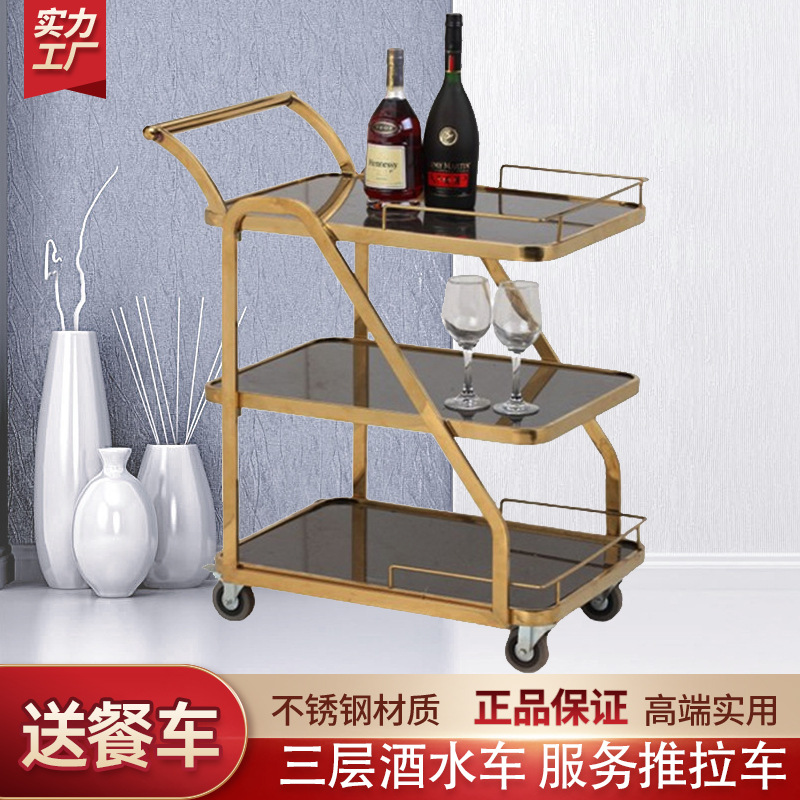 Mobil anggur gaya Eropa baja tahan karat sederhana mobil anggur mobil mewah tiga lapis layanan troli Internet selebriti terlaris mobil teh