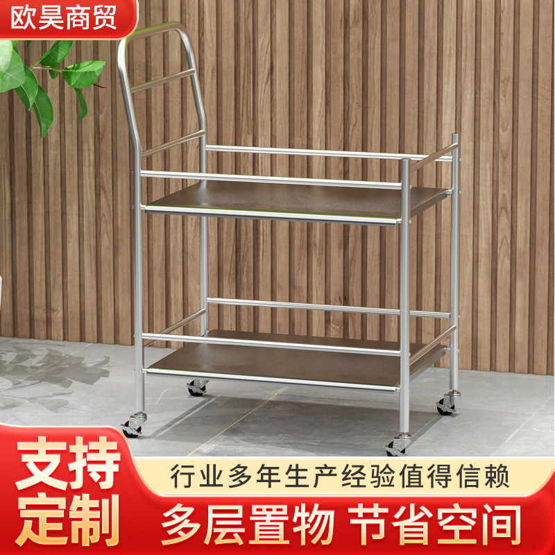 Troli mobil makan restoran, mangkuk restoran komersial, pengiriman makanan dan koleksi anggur baja antikarat tiga lapis troli hotel