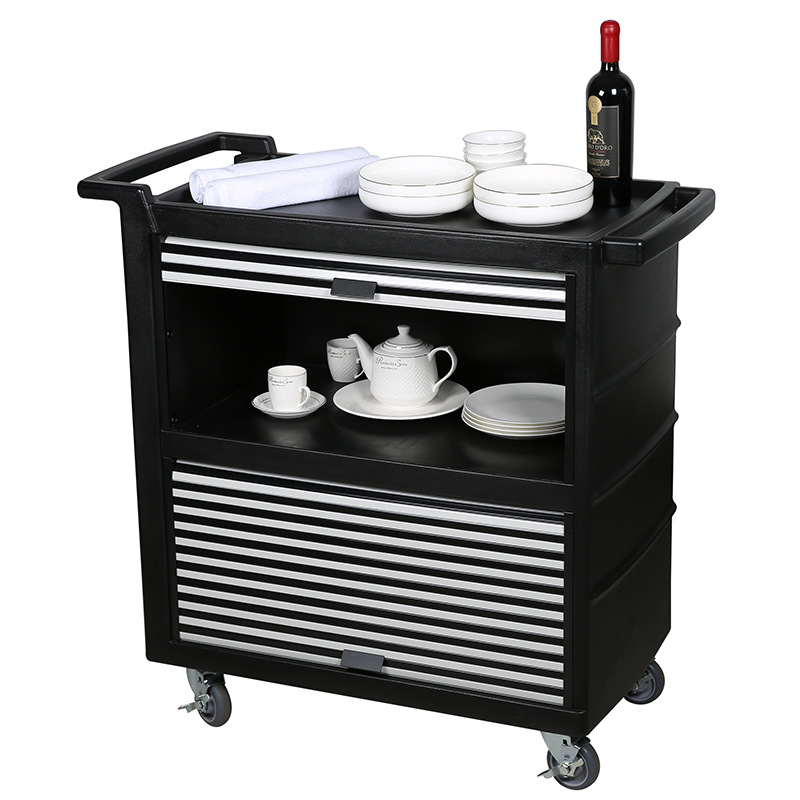 Koleksi bisu dorongan tangan multi-guna alat makan plastik Hotel mobil layanan besar pengiriman makanan mobil pengiriman makanan Mobil