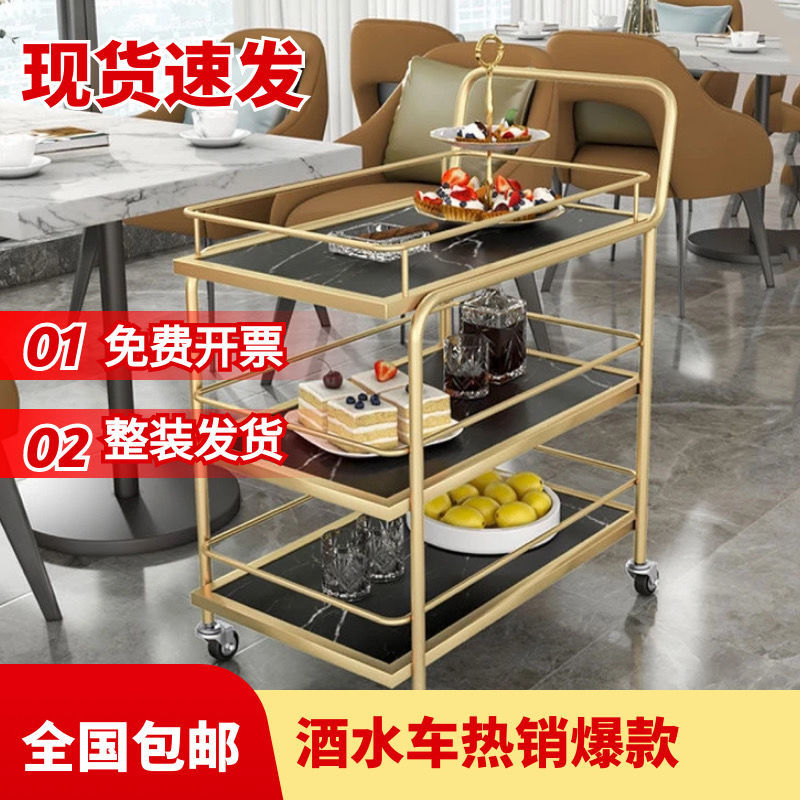 Gerobak Kecil Bergerak Nordik Mobil Penyimpanan Kelas Atas Mobil Minuman Hotel Mobil Makan Besi Bertingkat Emas Mobil Restoran