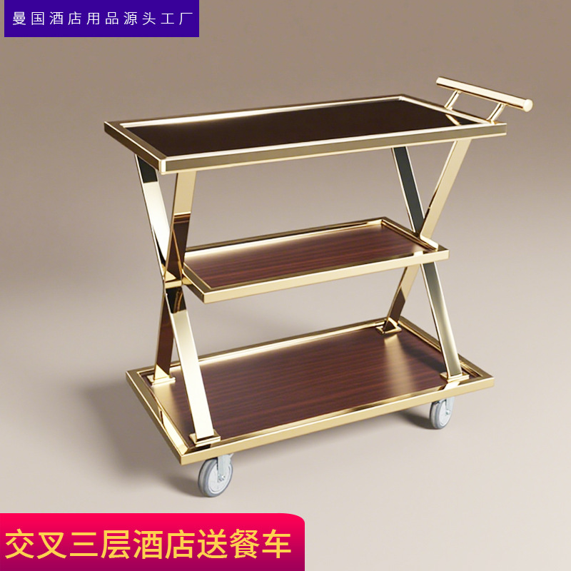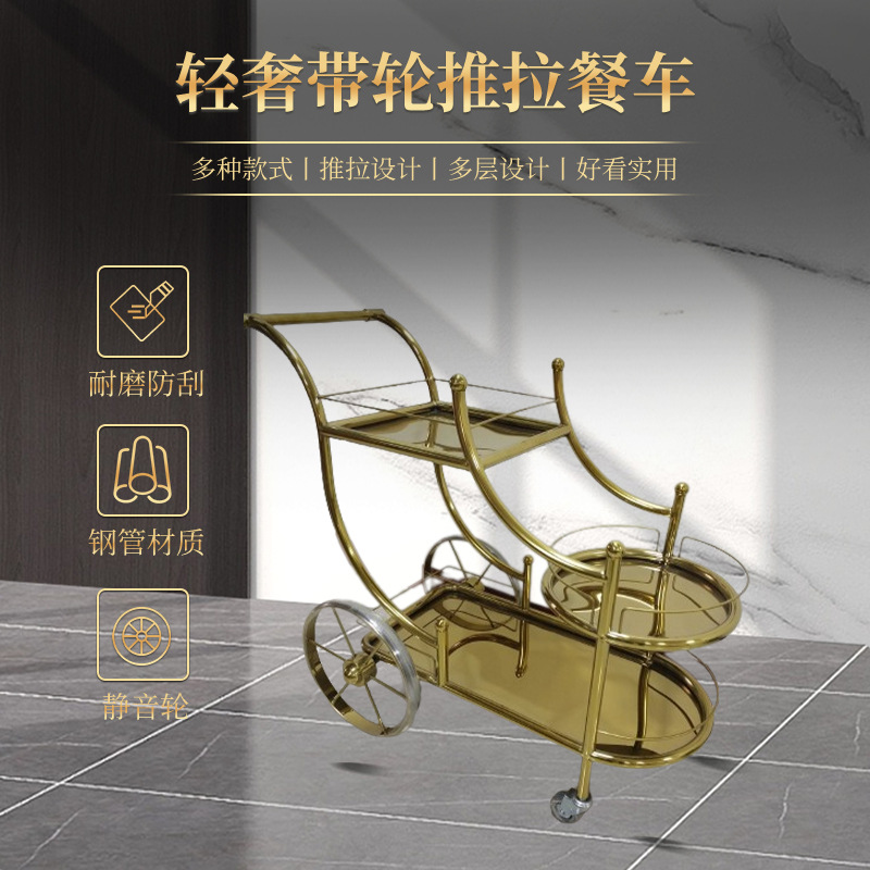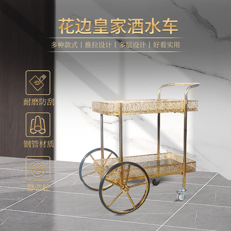 Modern sederhana layanan Restoran emas mobil hotel pengiriman mobil kue anggur multi-fungsi kereta dorong kekaisaran selir mobil anggur