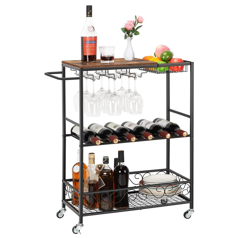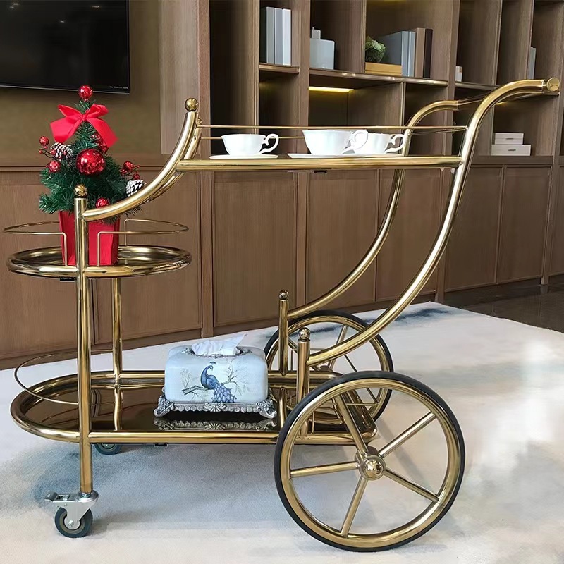 Troli mobil makan malam seluler retro komersial tiga lapis restoran restoran besi rak penyimpanan rumah tangga mobil anggur