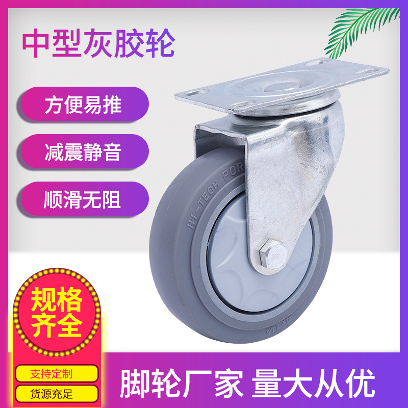 Penjualan langsung dari pabrik roda karet abu-abu medium karet abu-abu TPR roda kastor poros tunggal roda troli bisu roda universal
