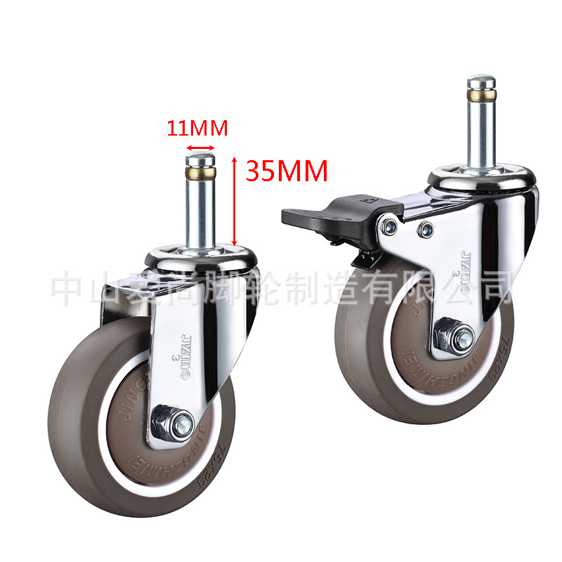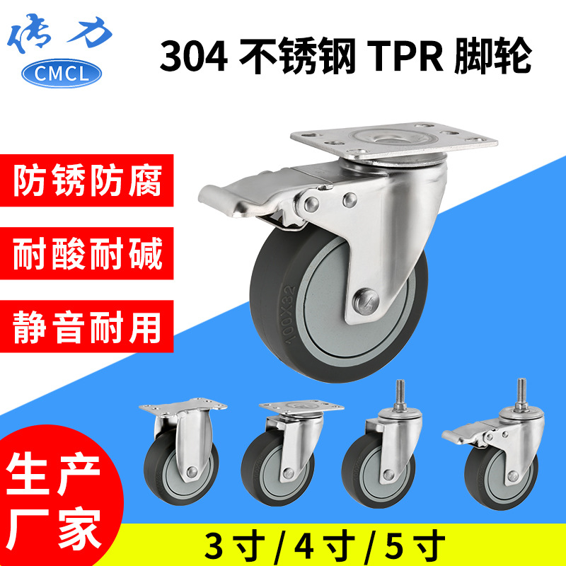 Kastor baja tahan karat batang sekrup roda universal dengan rem roda tpr bisu sedang 304 roda baja tahan karat