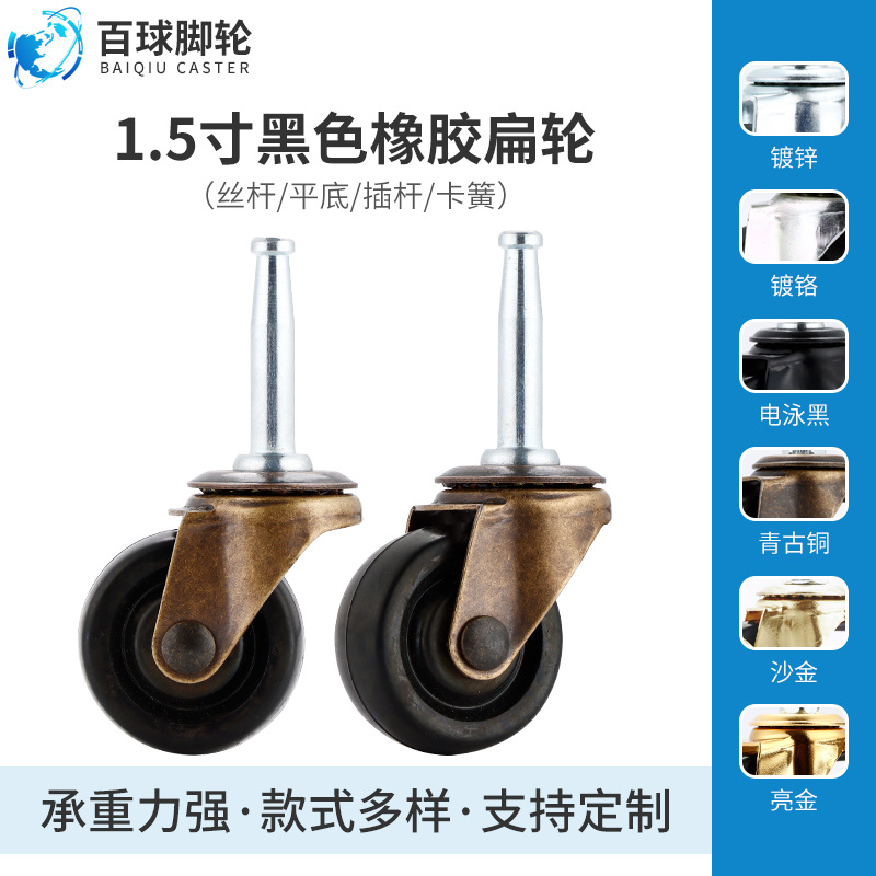 Plug Rod 1.5 inci roda laci bulat rak buku roda furnitur roda kecil roller lembut karet roda bisu roda universal