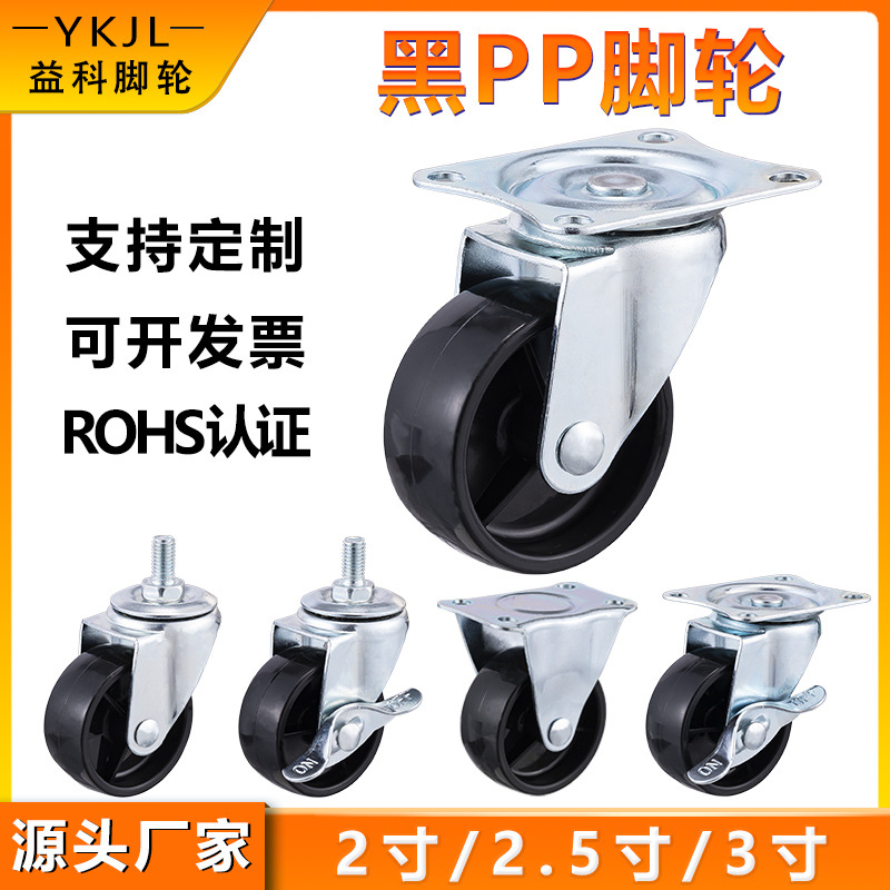 Roda universal batang sekrup 2.5 inci kastor PP hitam terang 2 inci dengan rem 3 inci rak panggangan roti roda troli