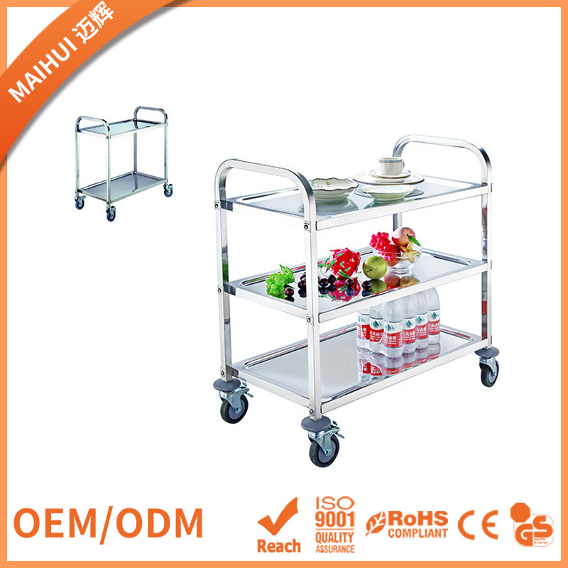 Troli dapur restoran hotel lapisan ganda, troli baja tahan karat lapisan ganda pabrik peralatan makan mobil