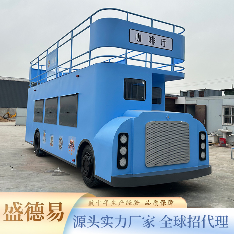 Outdoor Bertema Bus Teh Susu Truck Logam Tekstur Es Krim Kopi Serbaguna Traksi Gerobak Makan Produsen