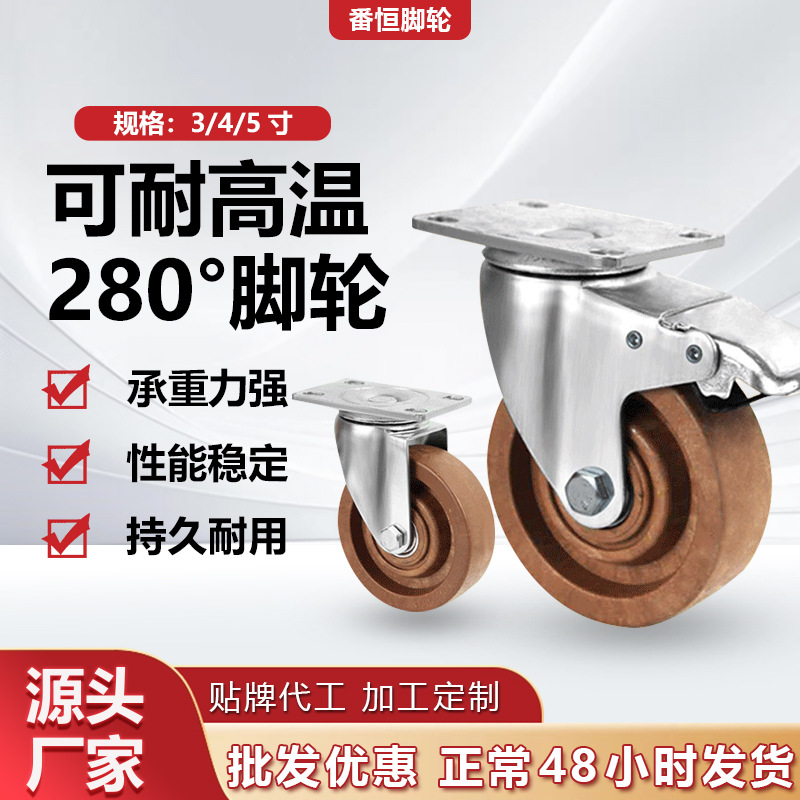 Fangheng Kastor 3 Inci 4 Inci 5 Inci Kastor Tahan Suhu Tinggi 280 Derajat Roda Gerobak Toko Roti Suhu Tinggi Grosir