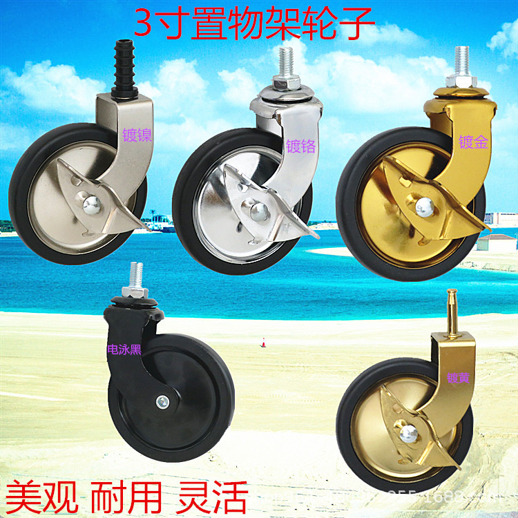 Braket roda universal mobil, trolley PP lapis emas nikel 3 inci, berlapis emas, rak makan mobil Universal