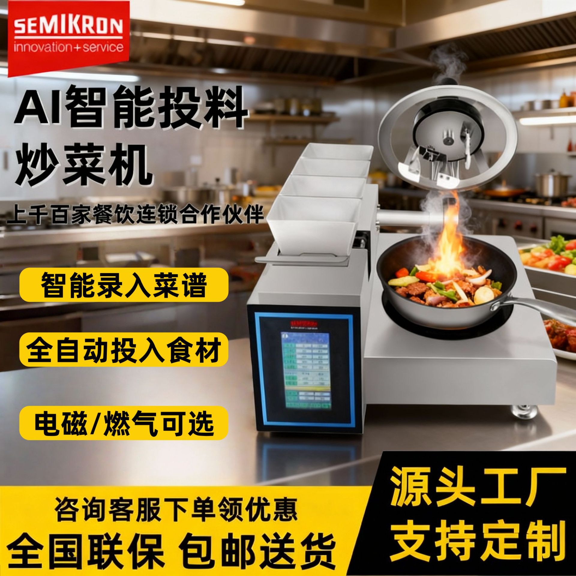 Mesin memasak semi-kontrol mesin masak robot memasak cerdas otomatis mesin masak pengaduk gas elektromagnetik mesin masak