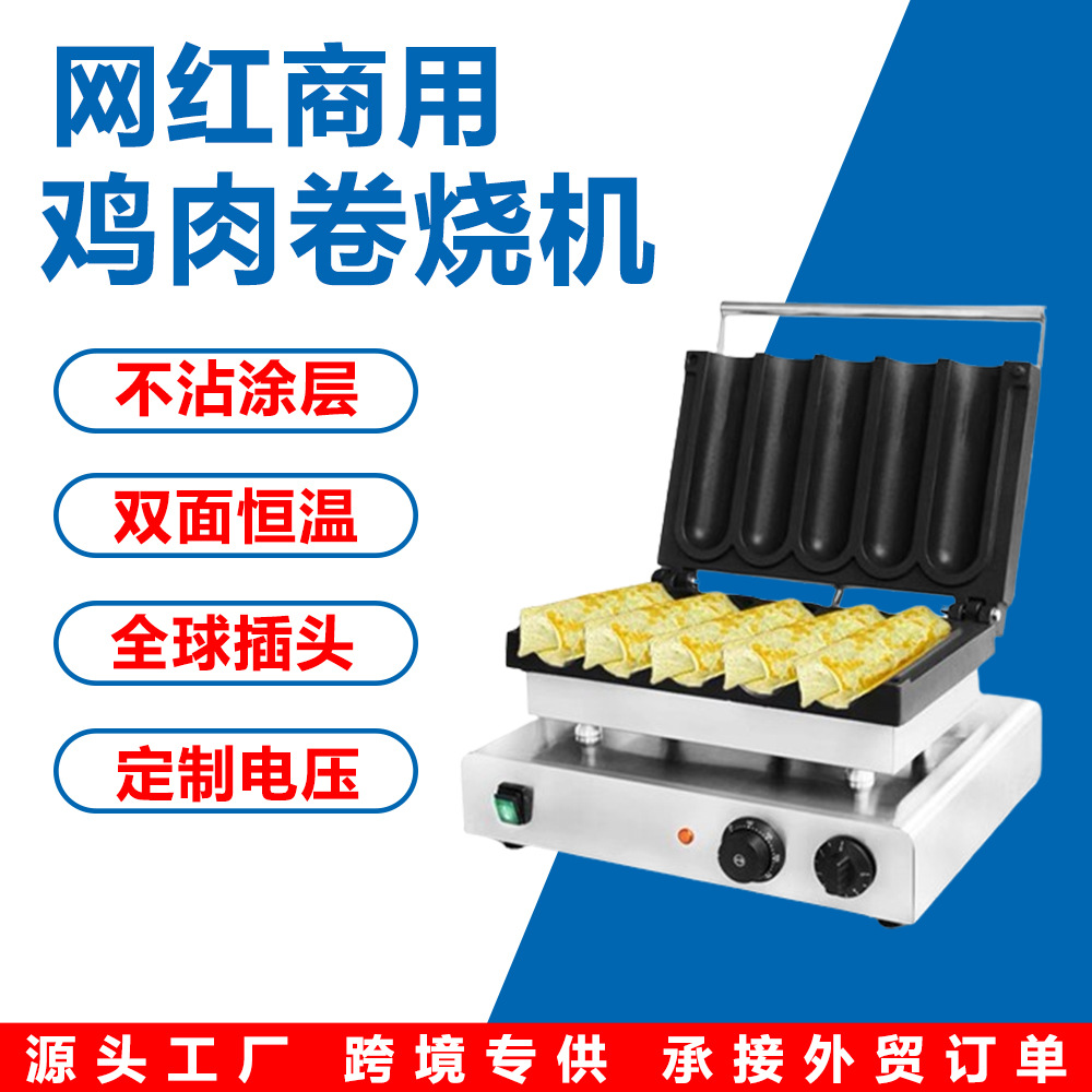 Pemanas listrik Internet komersil, peralatan makanan ringan baja antikarat, wajan tidak lengket, mesin gulung ayam lima-kisi