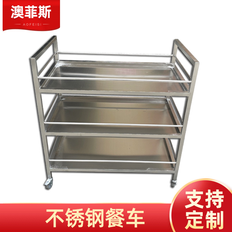 Mobil Makan Hotel Ekstra Tebal Komersial Tiga Lantai Mobil Pengiriman Makanan Stainless Steel Mobil Minuman Mobil Penyimpanan Mangkuk Mobil Restoran Mobil Stand