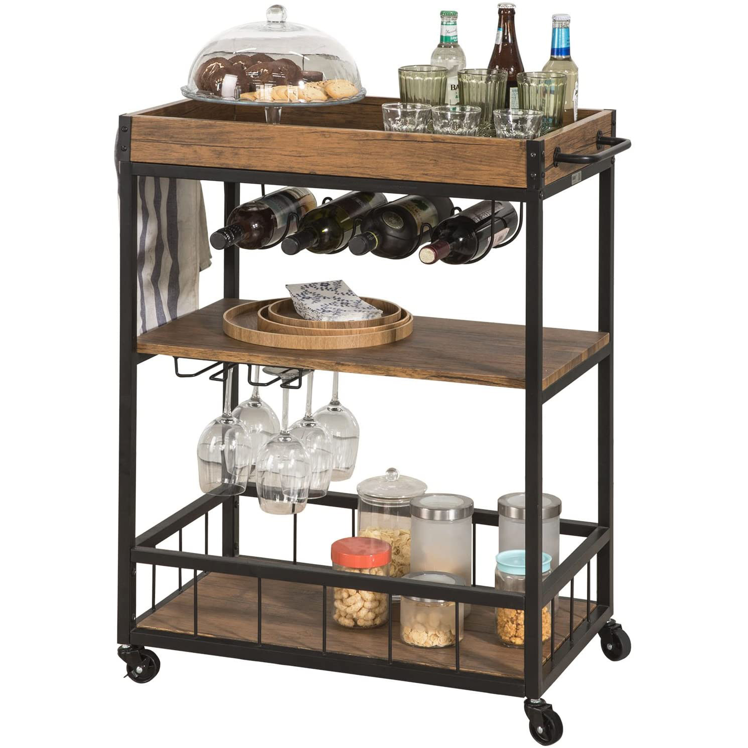 Rak dapur mobil, gaya Amerika makan besi gaya industri modis troli anggur kreatif lemari pajangan samping makan