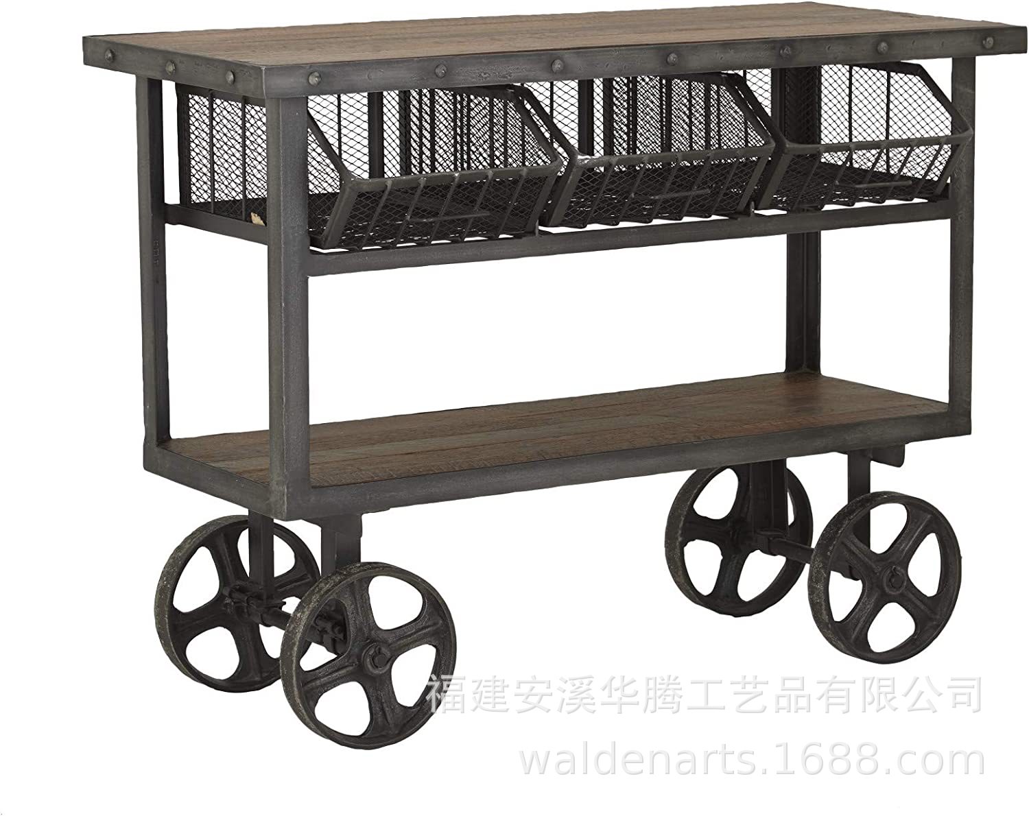 Mobil Makan Kayu Solid Gaya Amerika Mobil Minuman Rak Penyimpanan Seni Besi Toko Hot Pot Meja Sisi Mobile Troli Rumah Tangga