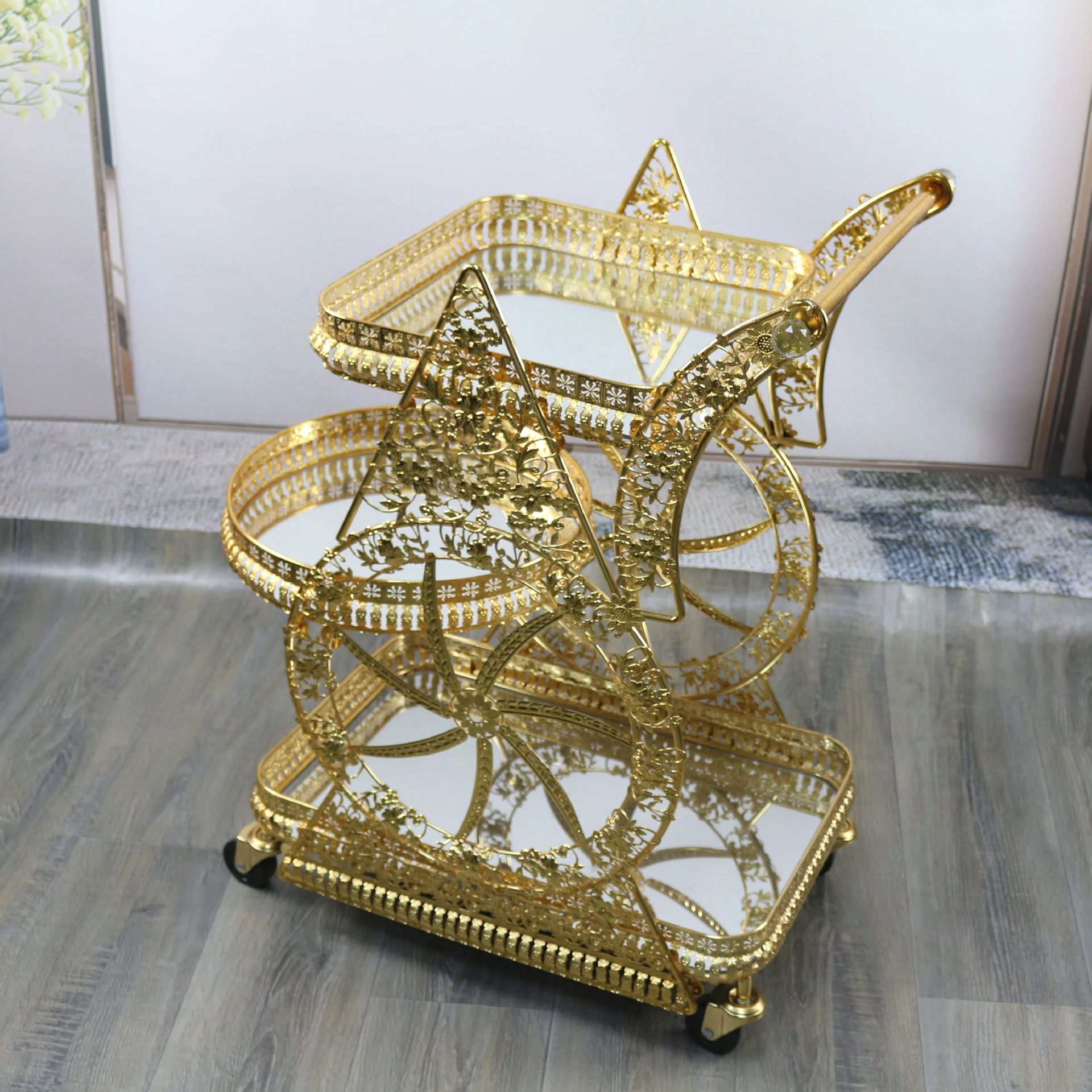 Troli Emas Muslim Rak Anggur Merah Kelas Atas Gaya Eropa Rak Penyimpanan Mobil Makan Mobil Makanan Penutup Grosir