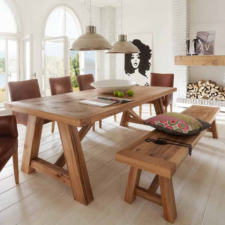 Meja Makan gaya Eropa, meja makan Amerika kombinasi meja kayu solid, meja makan pinus disikat, meja persegi panjang sederhana restoran Perancis