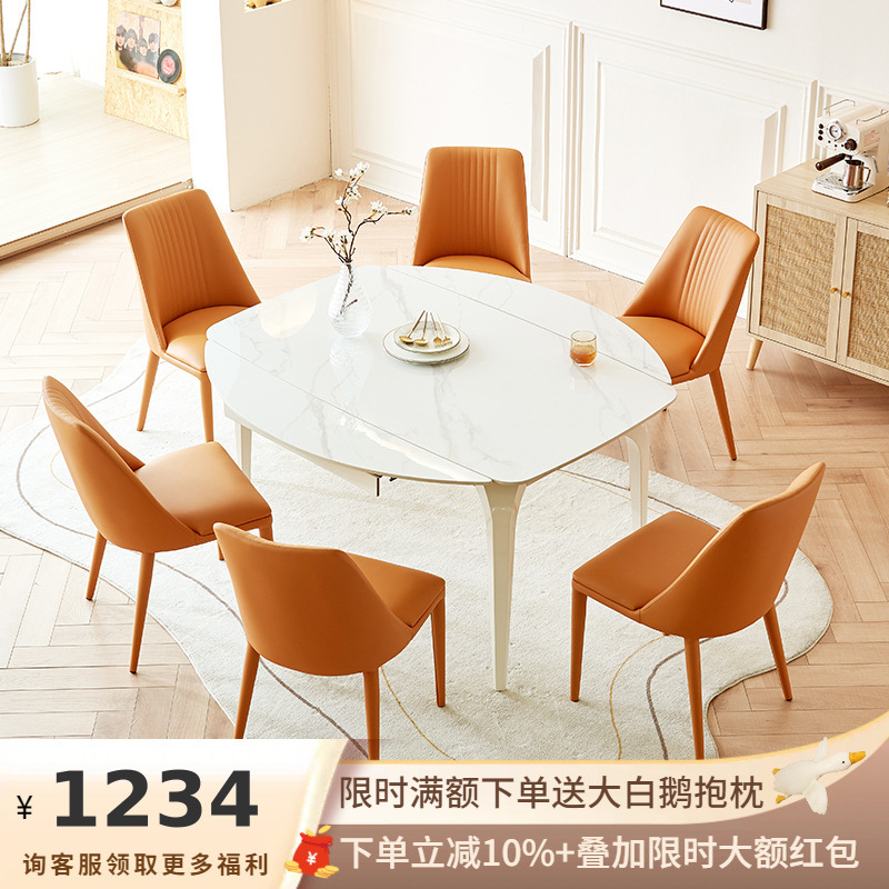 Meja Makan gaya Italia, gaya krim mewah ringan piring batu meja makan rumah minimalis modern ruang tamu piring batu Oval meja makan putih