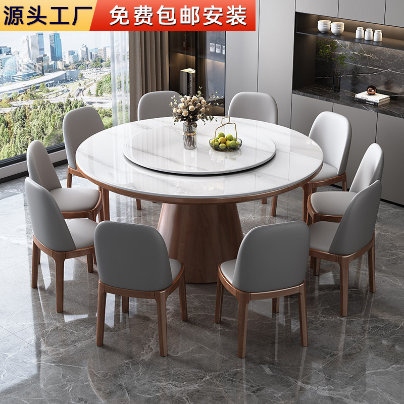Kombinasi Meja Makan dan Kursi Papan Batu Kayu Solid Rumah Meja Bundar Sederhana Modern dengan Meja Bundar Makan Malam Meja Makan Hotel
