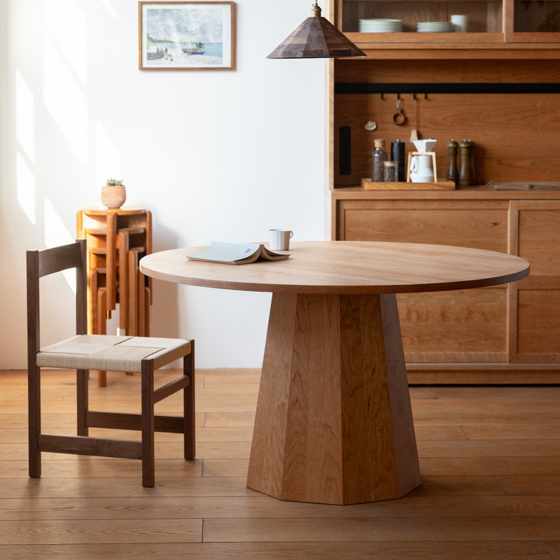 Grosir MUMO Ada Makanan Meja Bundar Kayu Bundar Rumah Tangga Kenari Hitam Kayu Cherry Modern Sederhana 6-10 Orang