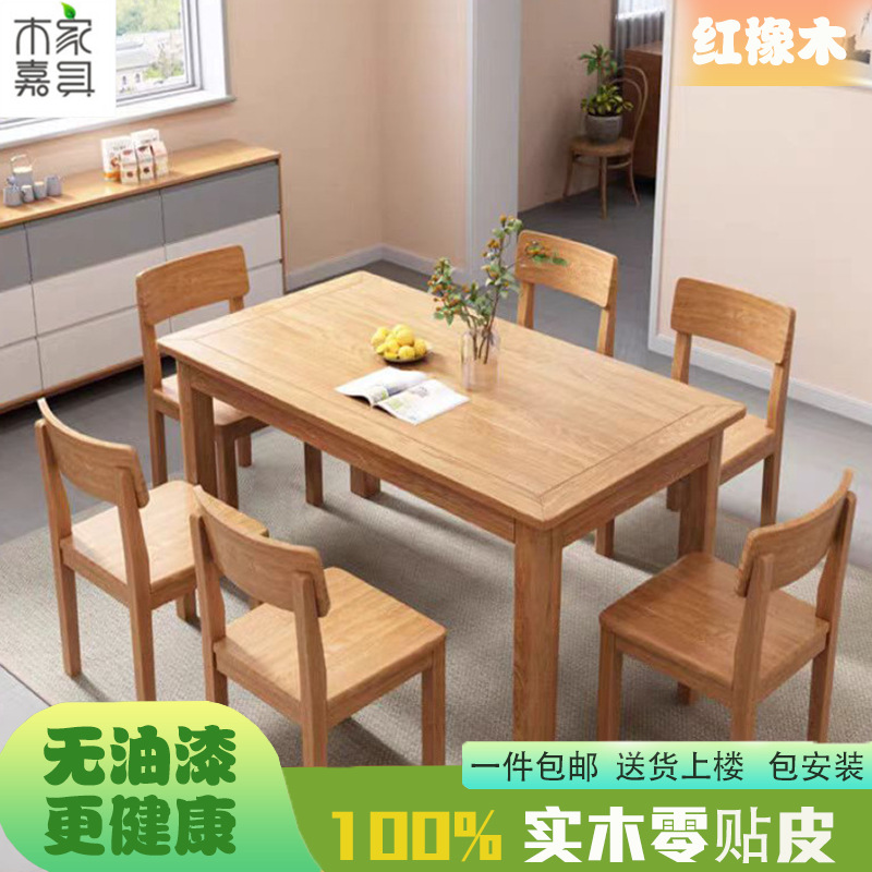Meja Makan Kayu Solid Kayu Ek Merah Kerajinan Minyak Lilin Kayu 1.35M Meja Makan Rumah Tangga Set Kursi Meja Makan Persegi Panjang 8 Orang