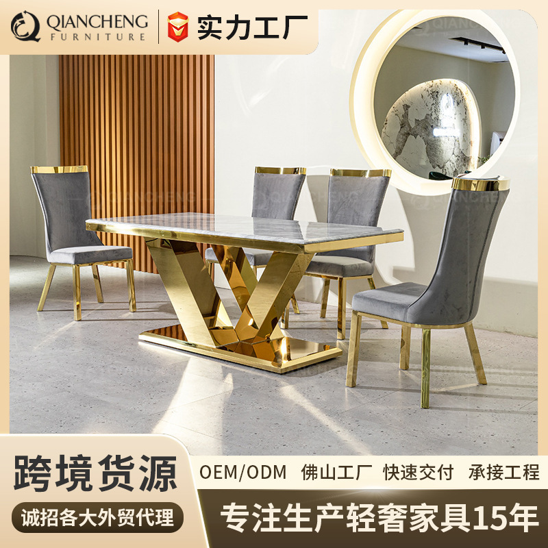 Perabakan Ringan Perabakan Marmer Persegi Panjang Persegi 8 Orang Meja Makan dan Kursi Kombinasi Modern Kreatif Stainless Steel