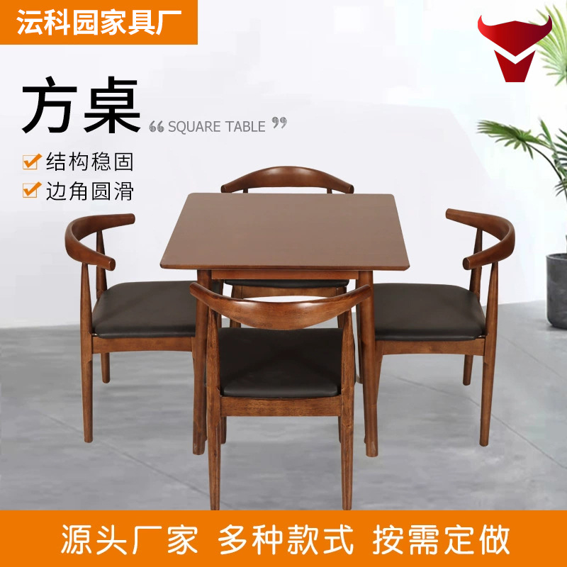 Meja persegi kayu solid, meja dan kursi kafe kasual, set meja dan kursi makan kayu solid bergaya Nordik, meja makan kayu solid untuk apartemen kecil rumah tangga.