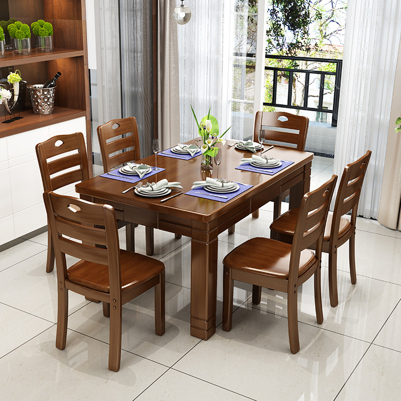 Furnitur Cina kayu padat meja makan Barat dan kursi kombinasi kecil apartemen kantin ruang makan furnitur meja nasi produsen