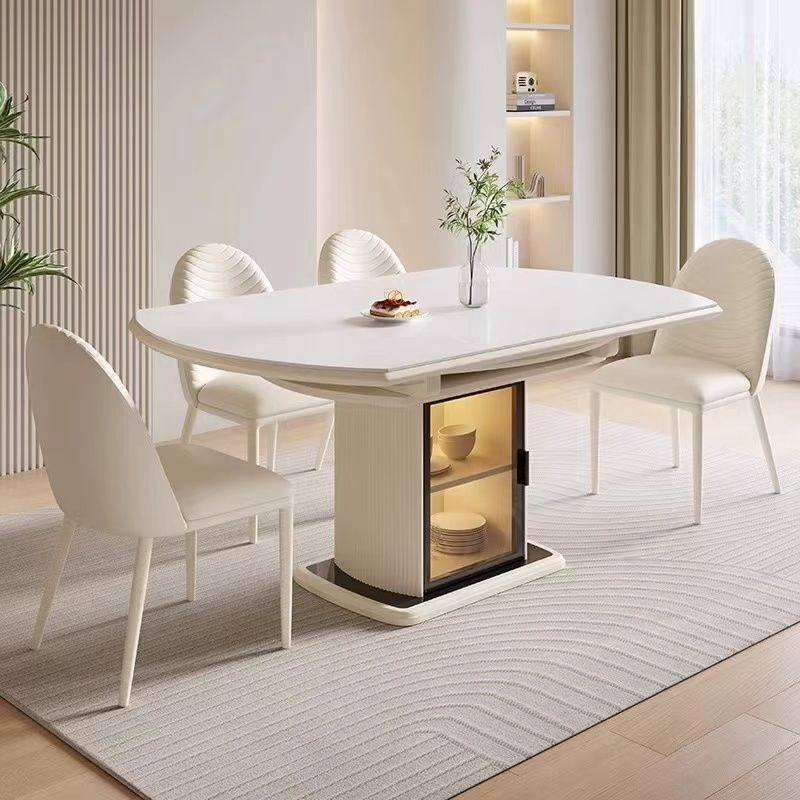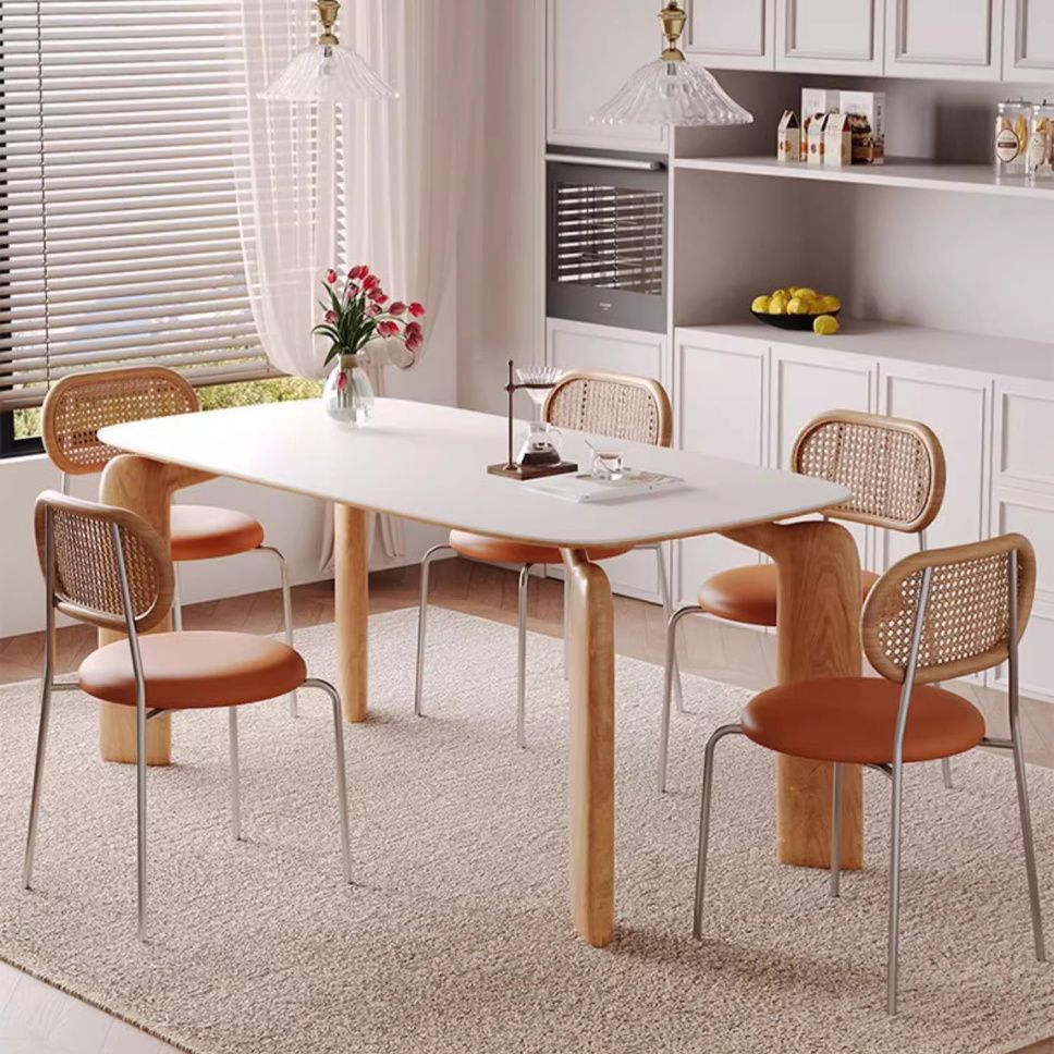 Meja Makan Persegi Panjang Tipe Rumah Tangga Kaki Gajah Eropa Utara Sederhana Modern Kombinasi Meja Makan dan Kursi Berbatu Gaya Italia