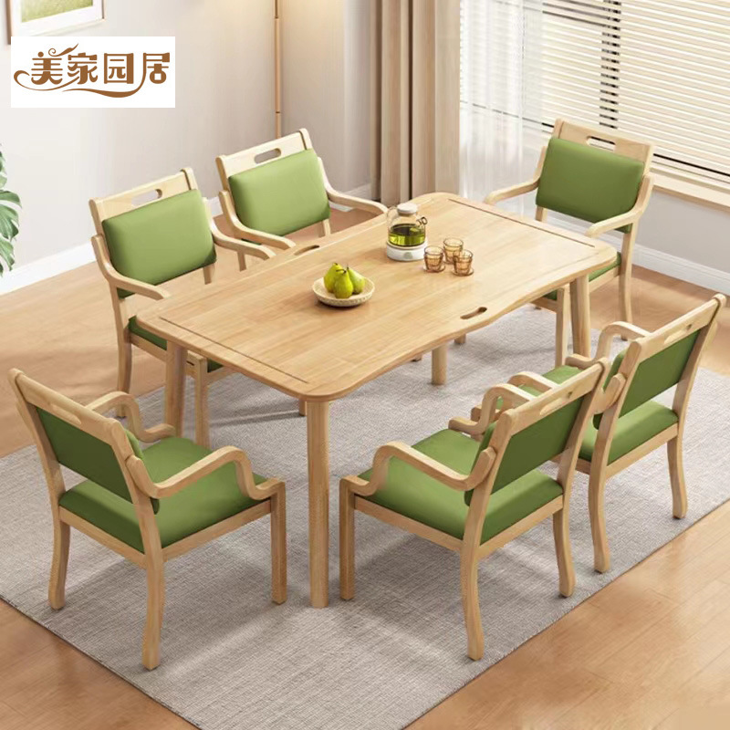Meja makan kayu Solid dan kombinasi kursi, meja makan dan kursi untuk orang tua di rumah perawatan