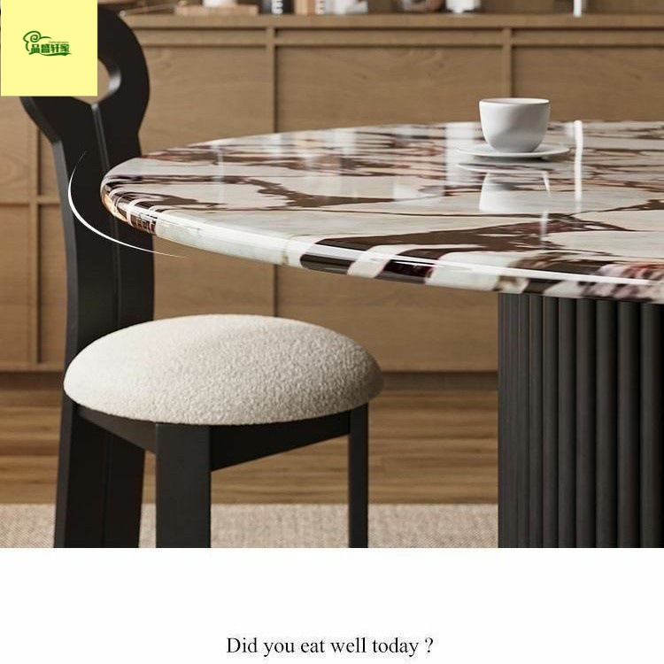 Meja Makan Rumah Tangga Ukuran Kecil Meja Makan Marmer Prancis Gaya Krim Penutup Bawah Meja Makan Kelas Tinggi Retro Oval