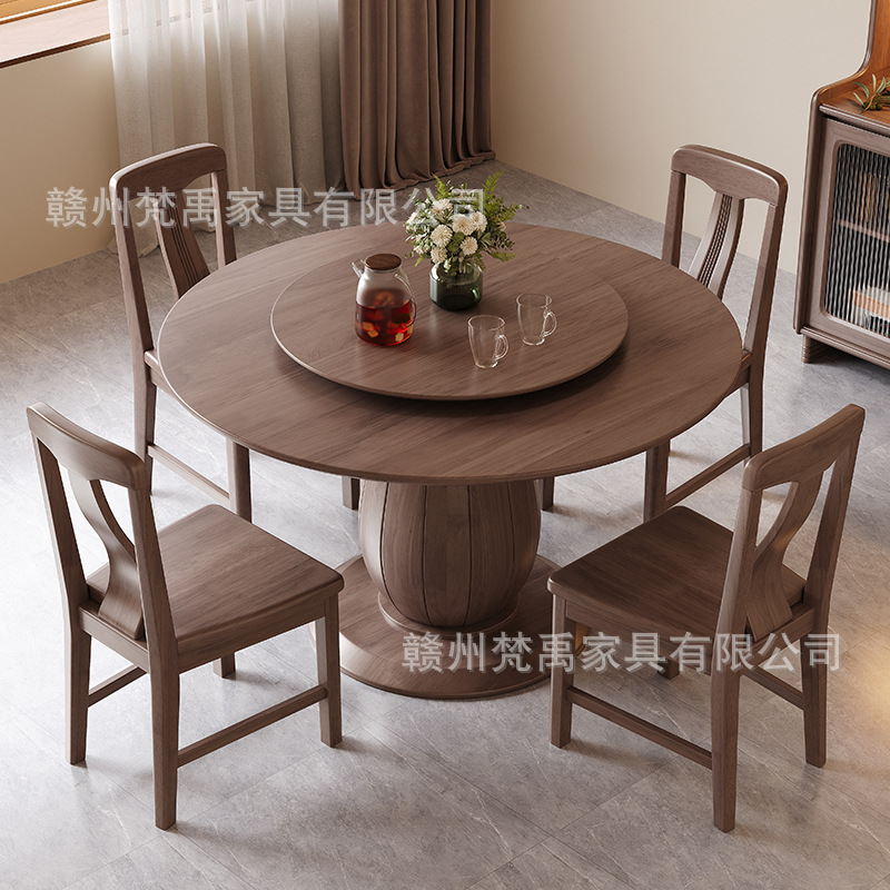 Meja Makan Kayu Solid Modern Sederhana Kayu Walnut Rumah Meja Bundar Ukuran Kecil Meja Makan Bentuk Bundar Bentuk Bundar Kombinasi Meja Makan dengan Piring Berputar