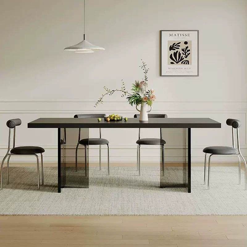 Meja Makan Papan Batu Akrylik Meja Meja Suspensi Persegi Panjang di Bawah Unit Kecil Selebriti Internet Sederhana Modern Ringan Hitam Murni