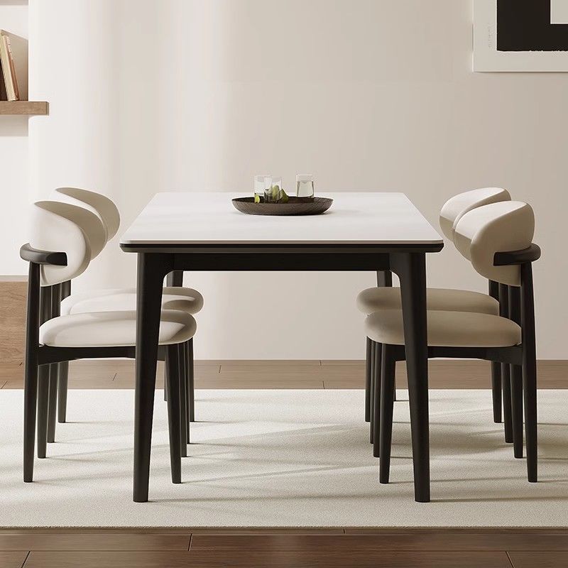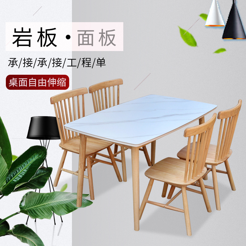 Meja Makan dan Kursi Papan Batu Kayu Solid Meja Makan Eropa Utara Meja Kombinasi Rumah Tangga Persegi Panjang Unit Kecil Sederhana Modern