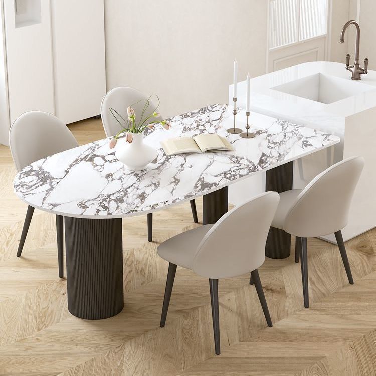Meja Makan Papan Batu Mewah Gaya Krim Ringan Tipe Apartemen Kecil Selebriti Internet Meja Makan Oval Eropa Utara Kombinasi Meja Makan Rumah