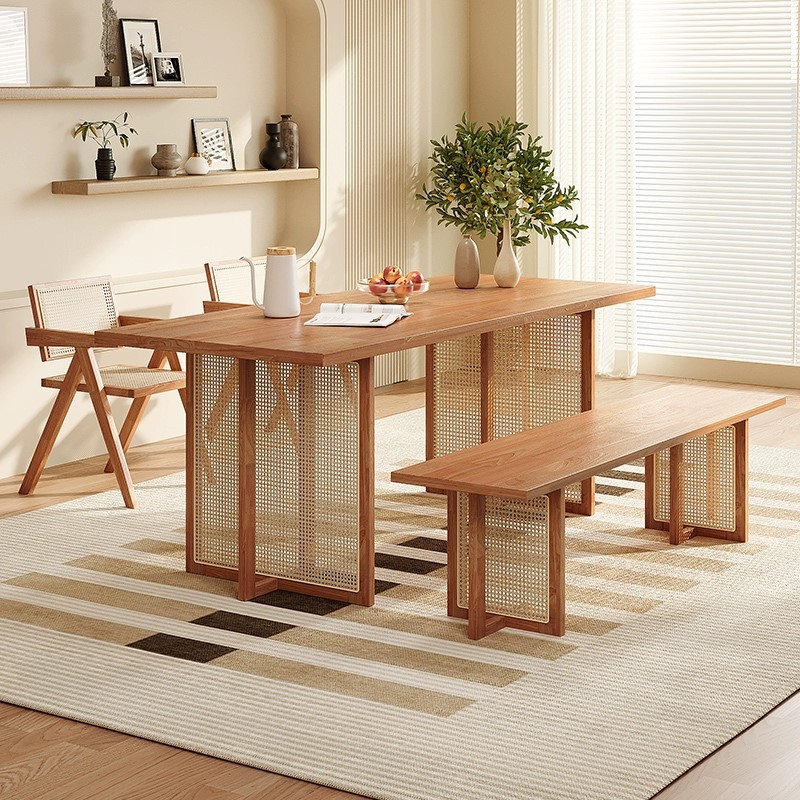 Meja Makan Kayu Solid Meja Makan Rumah Tangga Rotan Gaya Diam Persegi Panjang Meja Makan Sederhana Restoran Meja Makan Meja Makan Ukuran Kecil Gaya Kuno