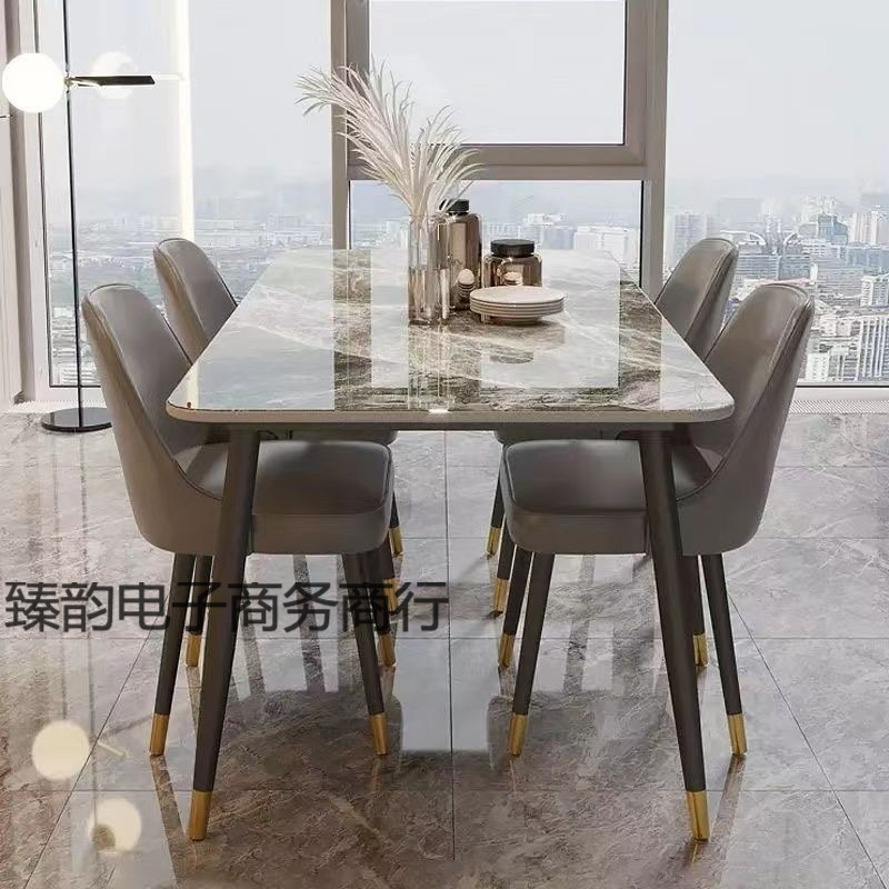 Meja Makan dan Kursi Papan Batu Mewah Ringan Modern Gaya Italia Kombinasi Meja Makan Sederhana Meja Makan Rumah Tangga Meja Panjang Kursi Kecil