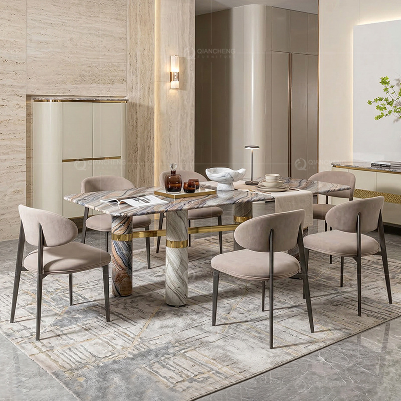 Meja Makan Papan Batu Mewah Ringan Rumah Tangga Modern Sederhana Unit Kecil Meja Ruang Tamu Sederhana Meja Makan Persegi Panjang Kombinasi Meja Makan dan Kursi