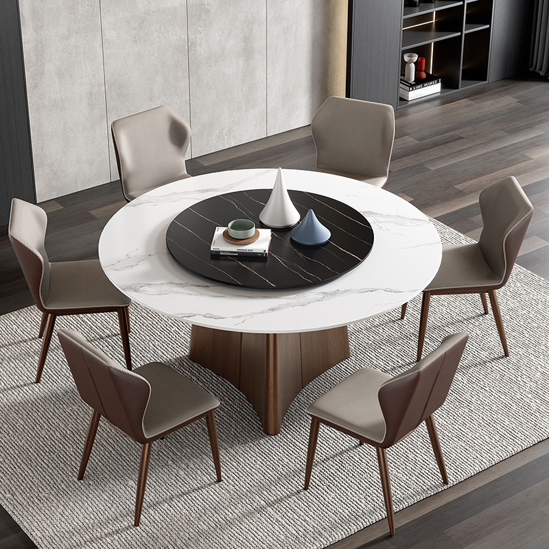 Meja Makan Papan Batu Terang Kombinasi Meja Makan Kursi Meja Makan Rumah Tangga Modern dengan Meja Berputar 1,8 m Meja Bundar Hotel Hotel dan Restoran