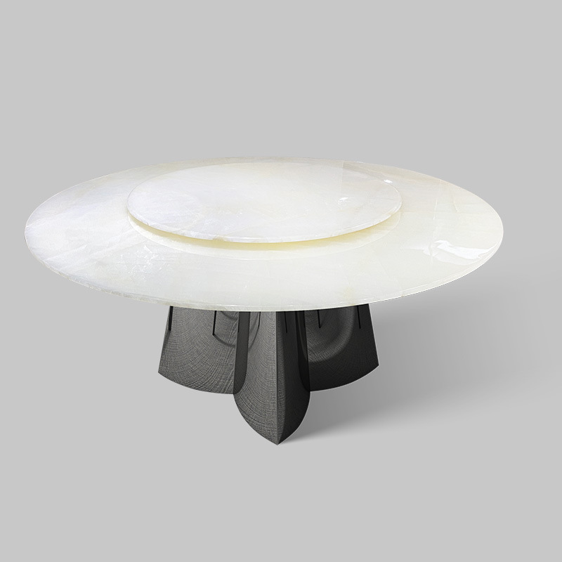 Meja Makan Marmer Giok Es Putih Alami Rasa Premium Rumah Tangga Batu Mewah Villa Besar Meja Makan Bundar Meja Meja Makan Batu Giok Meja Makan