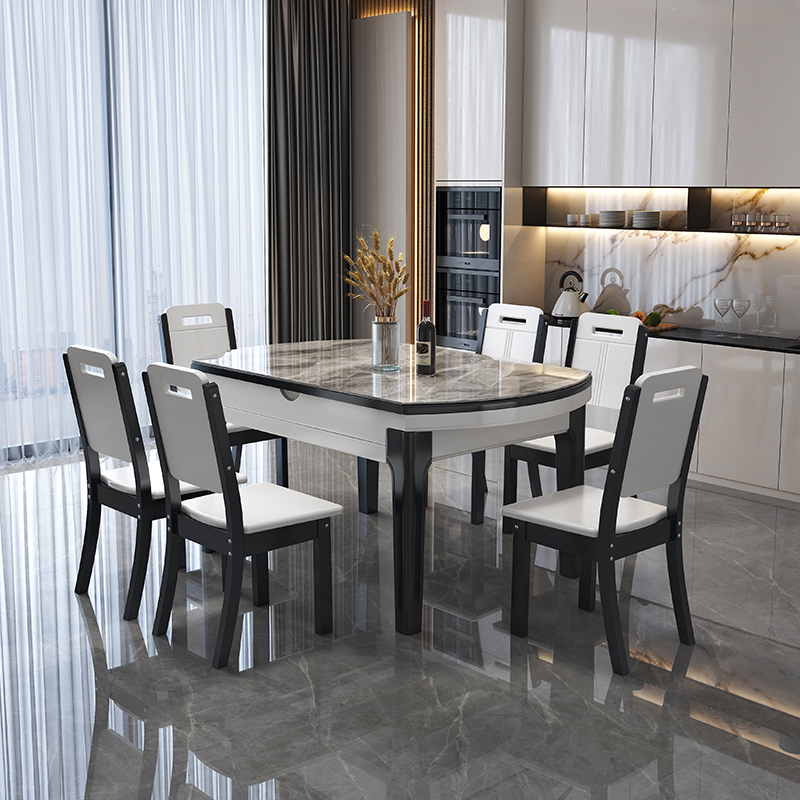 Kombinasi Meja Makan Papan Batu Meja Makan Lipat Teleskopik Rumah Tangga Mewah Sederhana Modern Meja Bundar Variabel Tipe Kecil