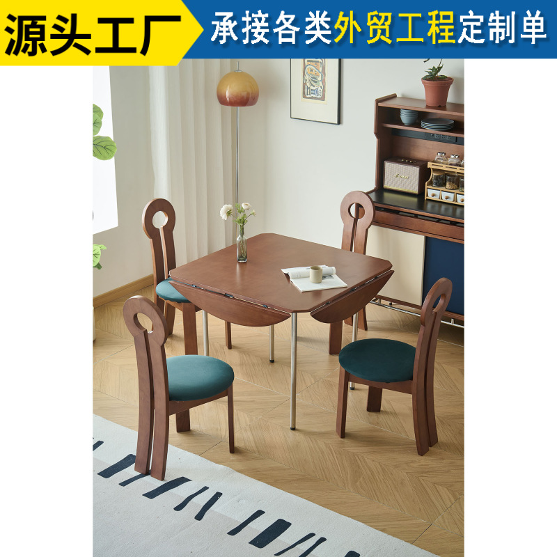 Meja Makan Meja Bundar Kayu Solid Lipat Rumah Tangga Tipe Kecil Eropa Utara Kotak Dua Fungsi Gaya Reproduksi Kombinasi Meja Makan dan Kursi Multifungsi