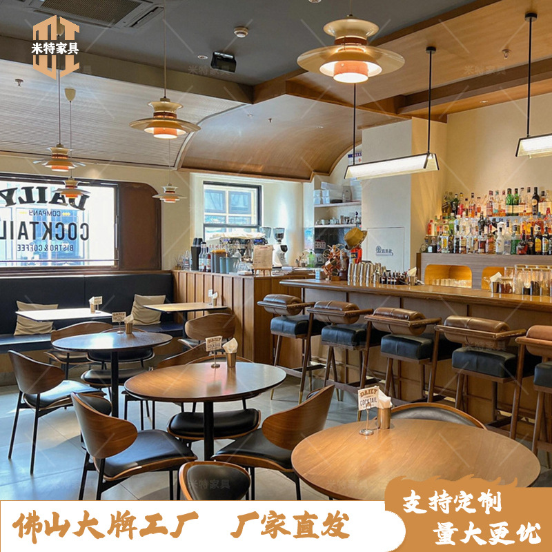 Restoran Barat Kafe Gaya Retro Bar Kursi Makan Bar Bar Meja Makan Kayu Solid Bar Gaya Amerika Kombinasi Meja Kursi Bar Bar Bar