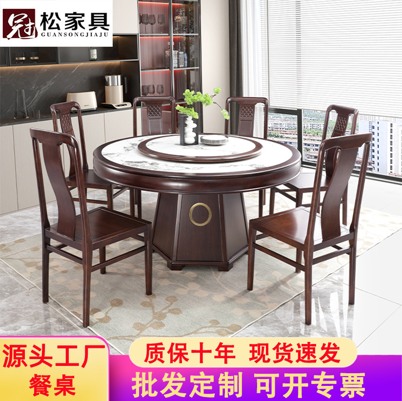 Meja Makan Kayu Wujin Gaya Tiongkok Baru Rumah Tangga Ukuran Besar dan Kecil Meja Makan Kayu Solid Antik Bentuk Bundar dengan Meja Makan dan Kursi Kombinasi
